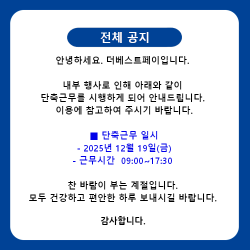 | 더베스트페이 대표이사 권관식 | Address. 서울특별시 강서구 허준로 217 가양테크노타운 406호 | 사업자 등록번호 : 107-86-11189 |